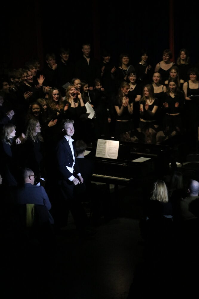 'Jeg er helt vildt glad for min studieretning. Fagene spiller godt sammen, og vi har et supergodt fællesskab omkring musikken. Det er fedt både at arbejde analytisk og praktisk sammen med andre, der deler min interesse.'