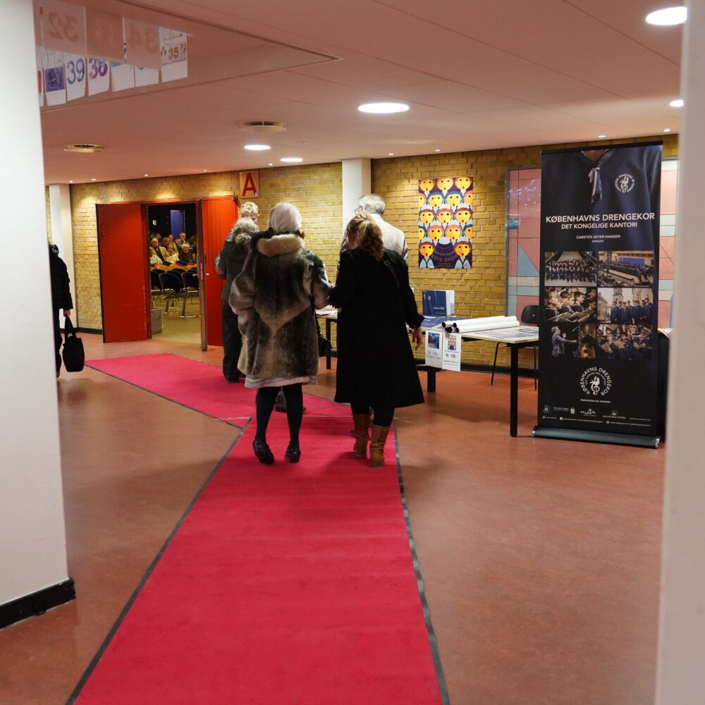Den røde løber var naturligvis rullet ud og gæsterne blev taget godt imod af Københavns Drengekors dirigent Carsten Seyer-Hansen og korets producent Henriette Holm Sandbye.